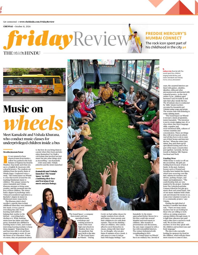 We are humbled and grateful to have our work recognized by leading publications. This collection of articles and features highlights our journey, from our innovative 'Sound Space on Wheels' project to our unique approach to teaching Indian classical music.