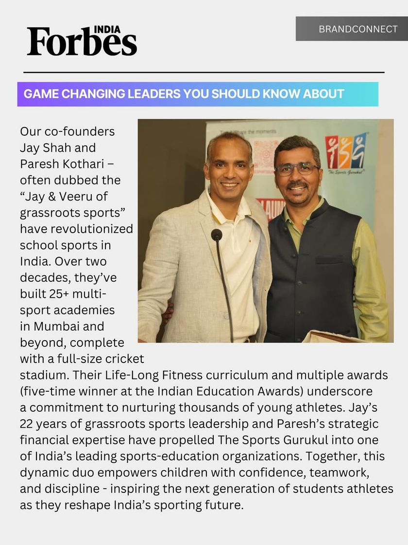 We are proud of the recognition we have received for our commitment to sports education. From features in Forbes India to landmark partnerships and testimonials from happy clients, these achievements reflect our dedication to building a healthier, more active India.