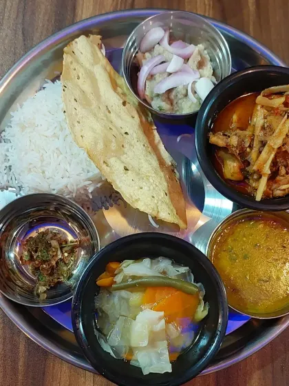This is the best way to experience our food. Each thali comes with Joha rice, dal, Aloo Pitika, Begun Bhaja, and Jola Bota, along with your choice of main curry, giving you a complete, home-style meal on one plate. We offer Assamese, Naga, and Manipuri style thalis.