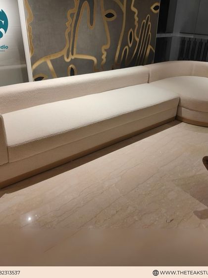 We make living room sofas, chairs, tables, and TV units to your exact size, design, and material needs, all built in our Delhi factory using teakwood and premium finishes.