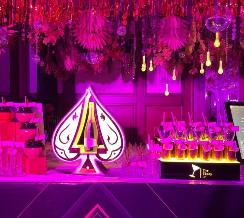 We believe a bar should be more than just a place to get a drink; it should be an entertainment hub. We offer exciting interactive elements like cocktail fountains, boozy shot dispensers, flair bartending shows, and even 'Spin the Wheel' drinking games to keep your guests engaged.