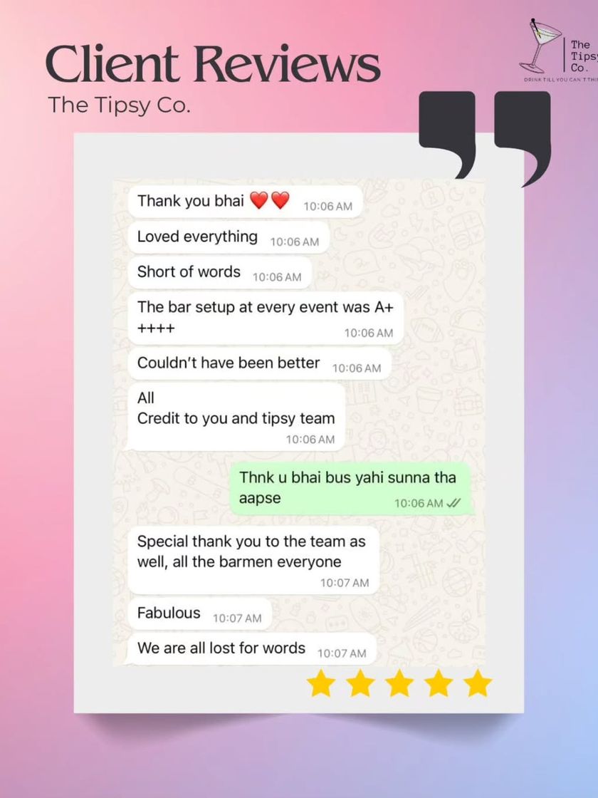 Our commitment to innovation and excellence has been recognized by the industry. We are proud recipients of multiple Gold awards for 'Trendsetting Bar Menu Design' from WeddingSutra, a testament to our passion for creating unforgettable bar experiences.