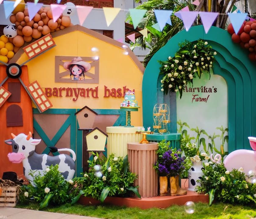 Oink, moo, and cock-a-doodle-doo, we're having a party down on the farm! These barnyard themes are perfect for little animal lovers. I create fun and rustic setups with custom barns, windmills, friendly farm animal props, and lots of charming, country-style details.