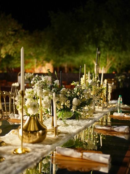 We specialize in themed concepts like Gatsby-era Sangeet nights and Indo-chic celebrations, ensuring each design element tells a cohesive story throughout the wedding festivities.