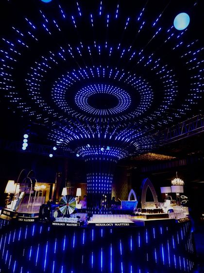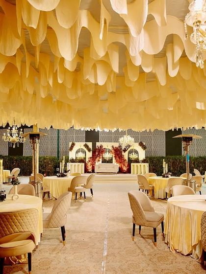 Beyond Just Decor - We play with Persian wedding themes, ruffled ceiling wedding decor, dramatic lighting, and custom touches.