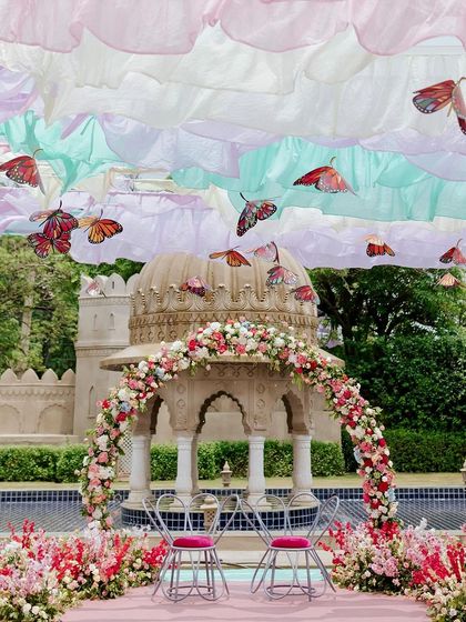We design and style weddings by customizing every detail to your story, theme, and venue, from mandaps to lounges, for any location you choose.