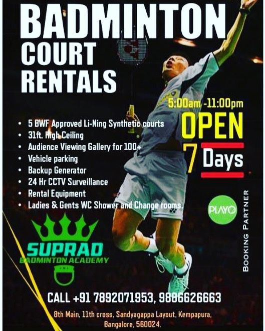 My academy features 5 BWF-approved courts with Li-Ning synthetic surfaces and 31-foot high ceilings for an uninterrupted game. I also provide ample parking, a spectator gallery for over 100 people, and clean changing rooms with showers.