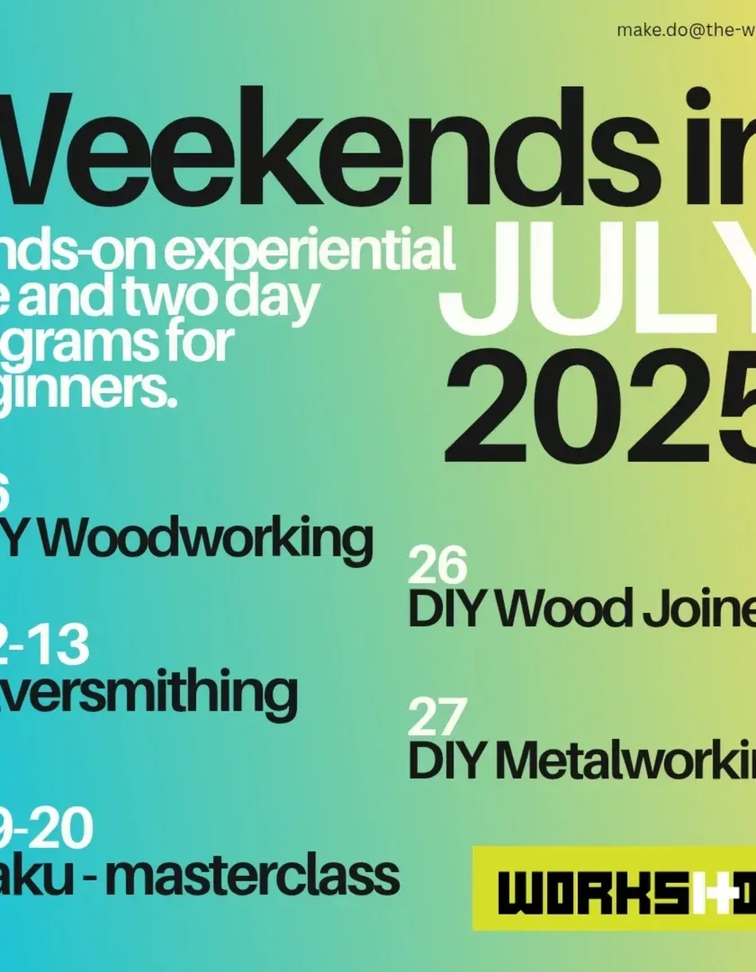 Here's what's happening at THE Workshop. Check out our latest schedule for weekend workshops, masterclasses, and special programs. Spots are limited and fill up fast, so book yours now and start your maker journey.