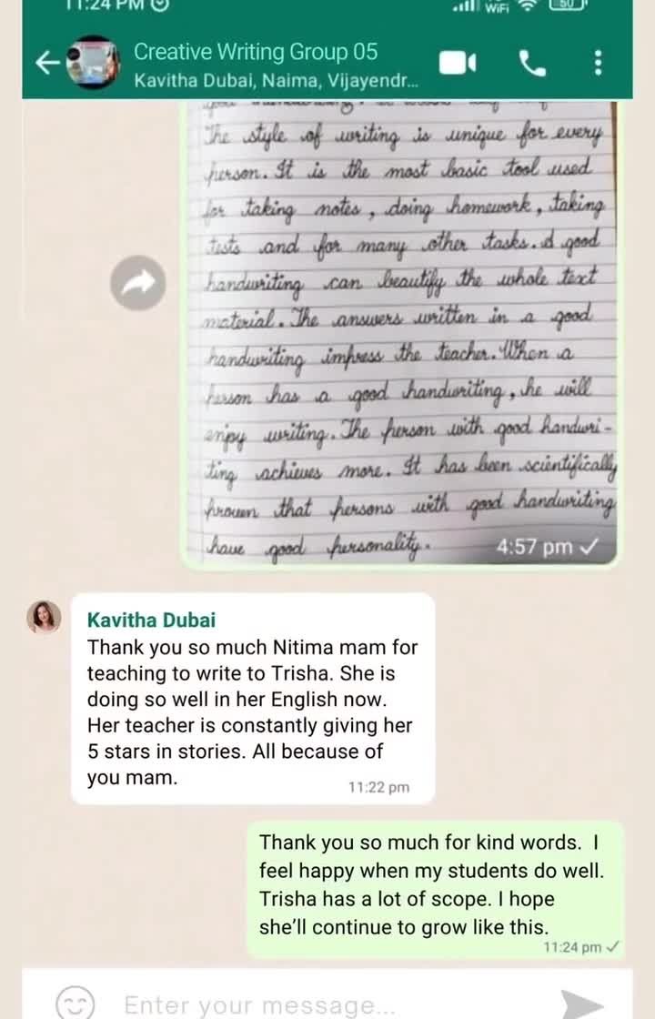 Here’s a peek inside my live, interactive sessions on Zoom. I create a nurturing and fun environment where students from Gurgaon, Delhi, Noida, and beyond feel comfortable sharing ideas, participating in exercises, and growing as writers together.