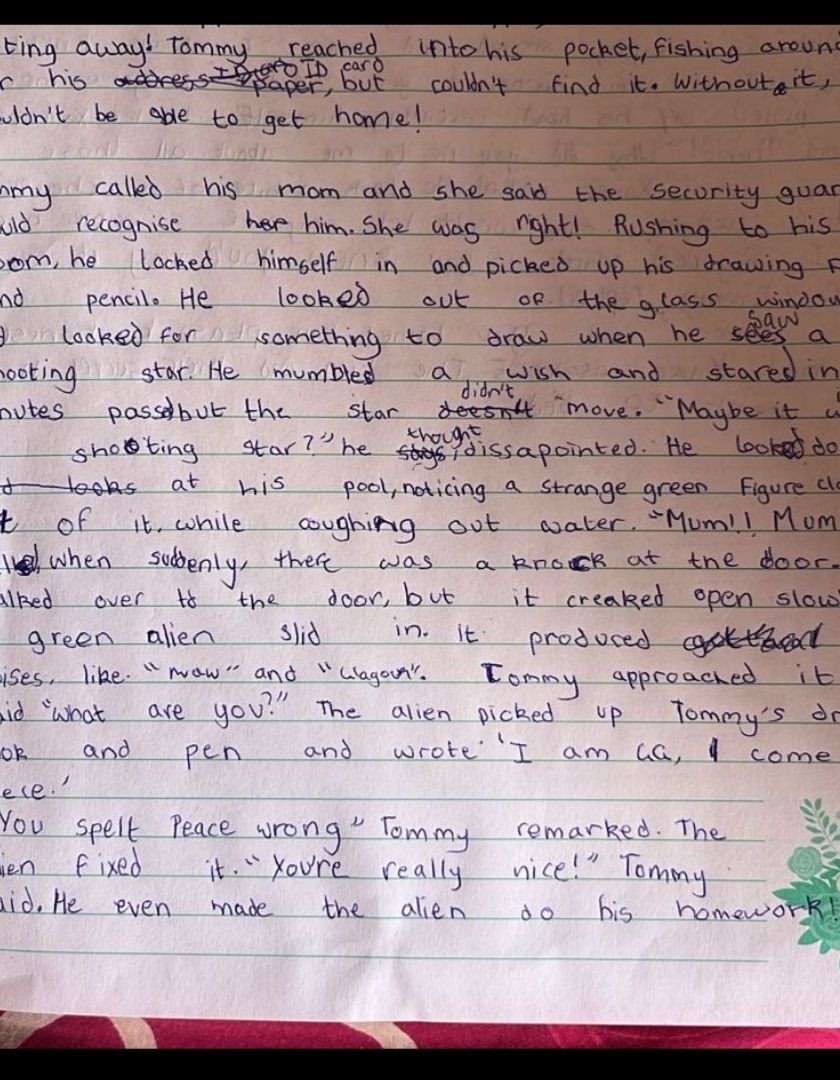 I am so proud to showcase the incredible work my students create. This is real progress, from first drafts and creative exercises to polished stories and improved handwriting, showing their growing confidence and skill.