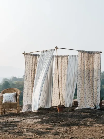We make custom curtains, cushion covers, bedding, and table linen from natural fabrics, with over 100 designs, in your exact size, and offer in-home measurement and fabric selection.
