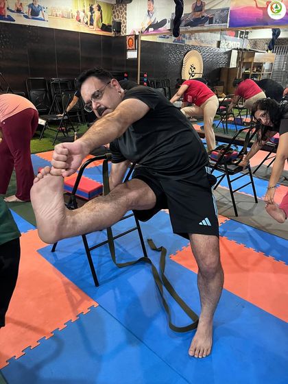 We run group yoga and fitness classes where all ages and levels practice together, using props and hands-on help for safe movement, with morning and evening batches.