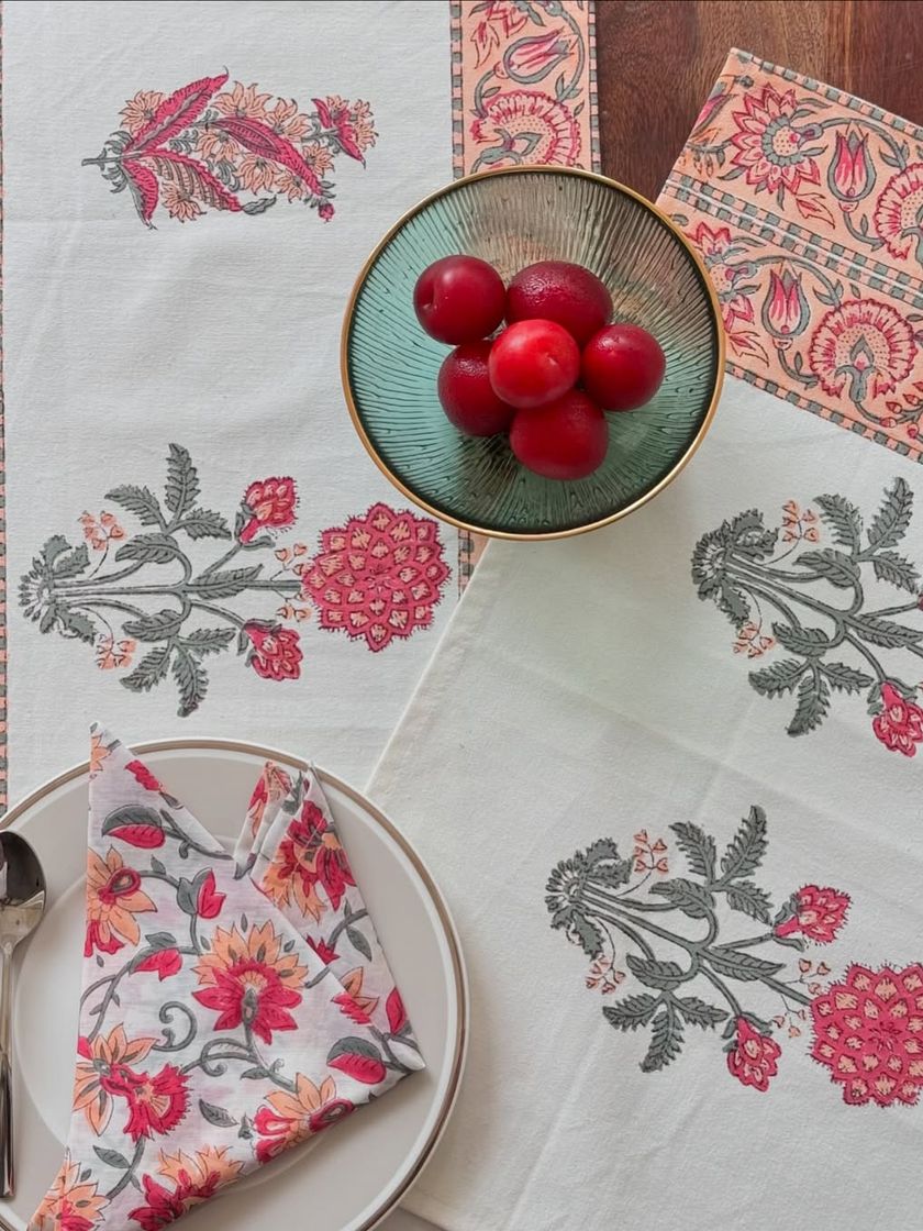 Set the mood for any meal with my collection of artisanal table linens. I offer runners, placemats, and napkins in coordinated sets or as individual pieces, all made from durable, natural cotton with charming hand-printed patterns.