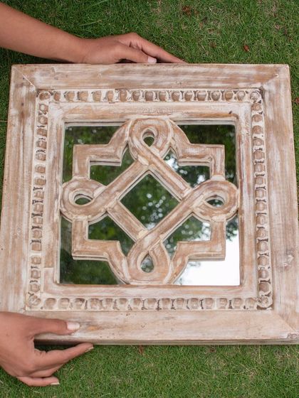 We craft unique mirrors using sustainable mango wood with intricate hand-carved details. Our collection features various shapes including circular, square, and floral designs, each piece combining rustic charm with bohemian aesthetics.