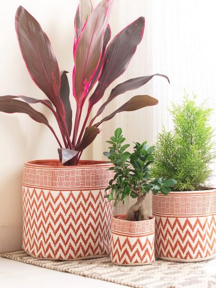 - Woven jute baskets work for laundry, planters, pet toys, or just stashing all the random things that never seem to have a spot.