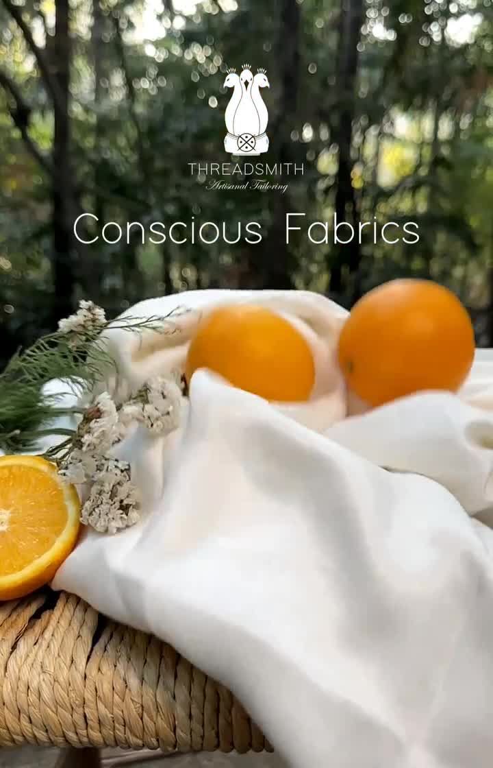 We believe luxury shouldn't cost the planet. We exclusively use conscious and innovative materials like cruelty-free Ahimsa silk, breathable hemp, and unique fabrics made from lotus stem and orange peel.