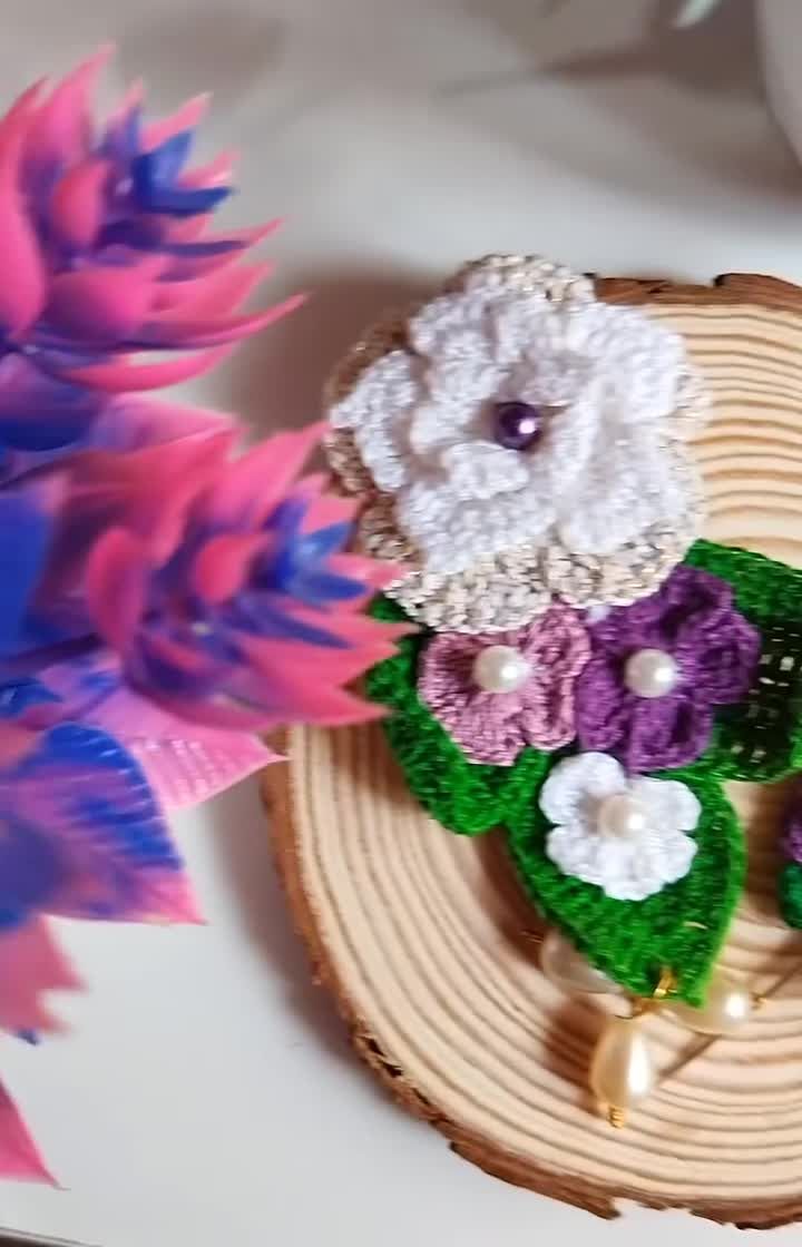 Add a personal, handmade touch to your outfits with these crochet accessories. This section includes tutorials for creating beautiful floral brooches with pearl details and patriotic pins for special occasions.