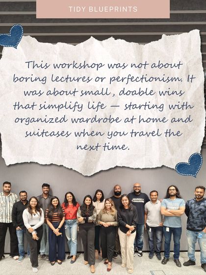 I design and lead interactive, hands-on workshops for corporate teams and community groups. These sessions skip the boring lectures and focus on practical skills like office organization, smart packing, and team-based decluttering challenges that improve productivity and reduce stress.