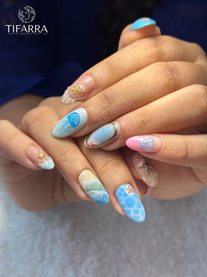 We bring the ocean to your fingertips with detailed, multi-dimensional beach-themed art. Our designs feature hand-sculpted 3D elements like seashells and starfish, realistic water effects, and vibrant ombre sunsets.