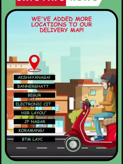 Good news! We are constantly expanding our delivery services across Bangalore. We serve areas like Bannerghatta, HSR Layout, Koramangala, and BTM Layout. Order from our website or find us on Swiggy and Zomato.
