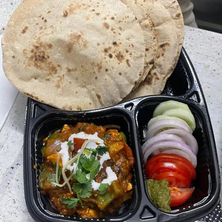 Our portion-controlled thalis are a complete, balanced meal. We use fresh chakki atta for our whole wheat chapatis and prepare a variety of home-style sabzis daily, so you get both taste and health.