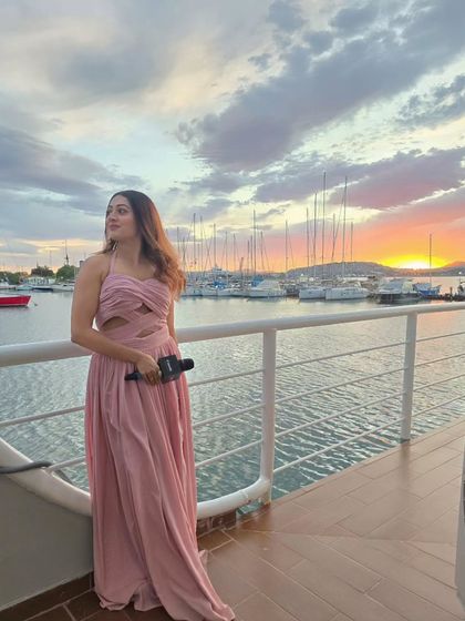 Hey, I’m Tina. If you spot a girl hyping up a crowd with a mic, that’s probably me. Born between Delhi and Chandigarh, I’m into fashion, fitness, and bikes. My job’s taken me everywhere—Mykonos, Udaipur, you name it. Love a good mirror selfie, especially when it’s corset plus lehenga, total main character feels. But I’m not always on turbo—sometimes it’s slow mornings, food trails, and bike rides with my guy. Saree or gym gear, I’m here for the views, always.