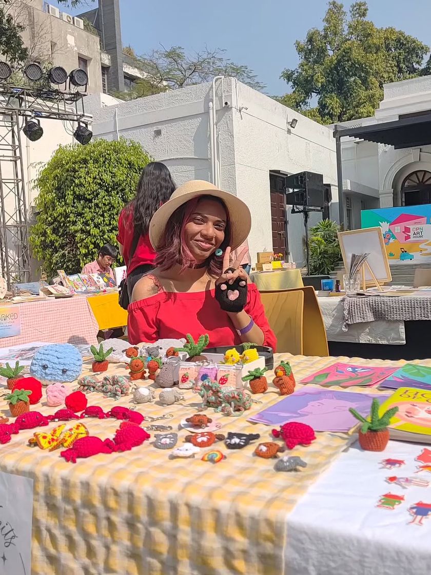I create a variety of tiny, cute, and sometimes weird crochet items, from plushies and keychains to unique accessories. Each piece is handmade by me, including amigurumi figures and other fiber art creations.