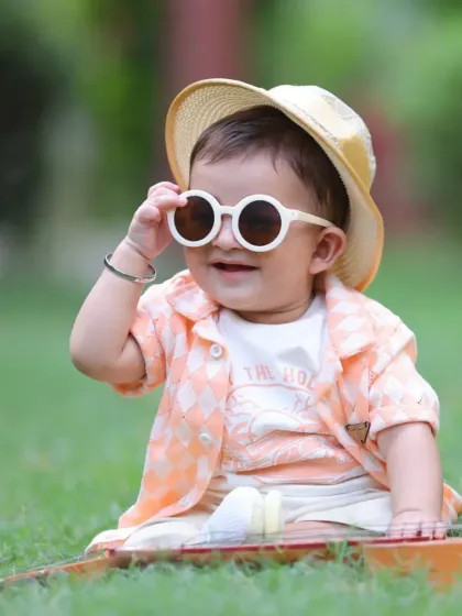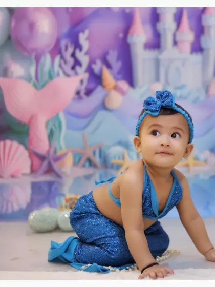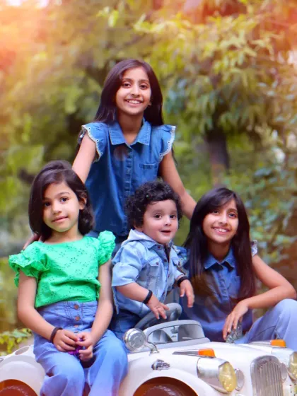 We do kids photoshoots in Delhi and Noida at your choice of location with 30+ backdrops, themed props, costumes, and family involvement included, delivering both edited and raw images.