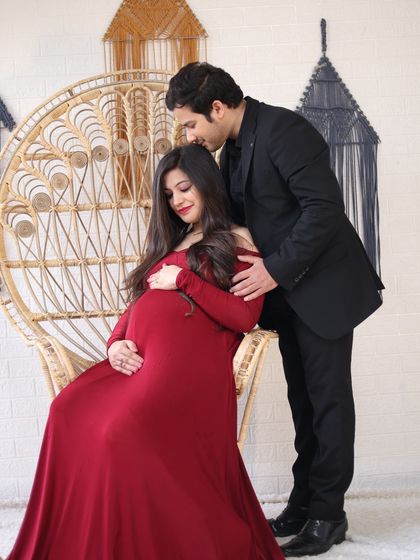 We do maternity photoshoots at your home, in our studio, or outdoors, with custom styling, props, and all edited and raw photos included.