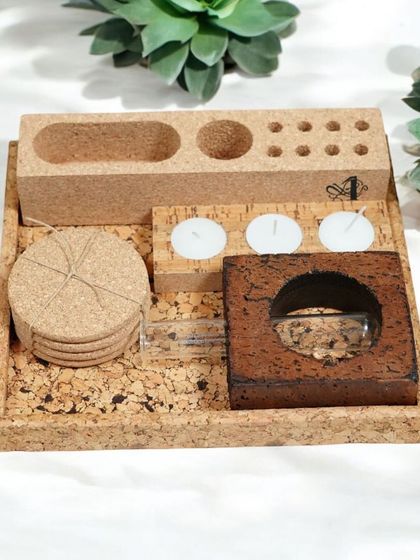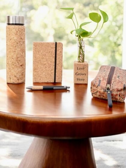 We offer gifts made from cork, vegan leather, and coconut fibre, with plantable packaging and options to personalize for individuals or companies.
