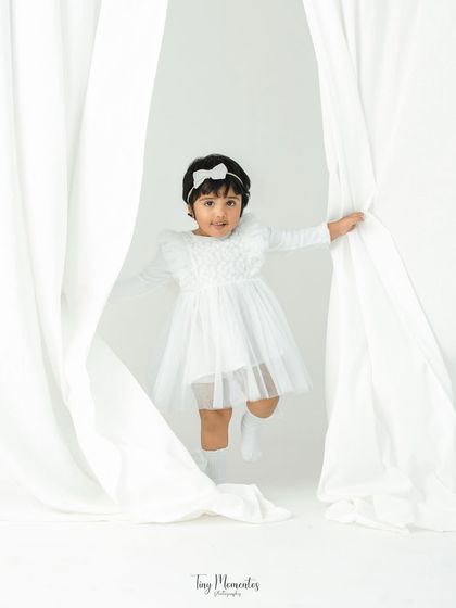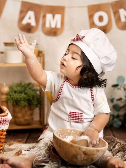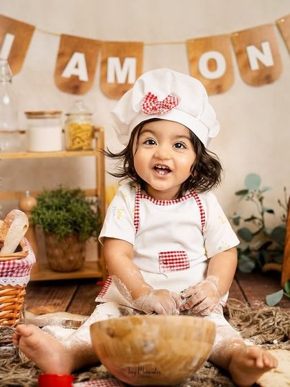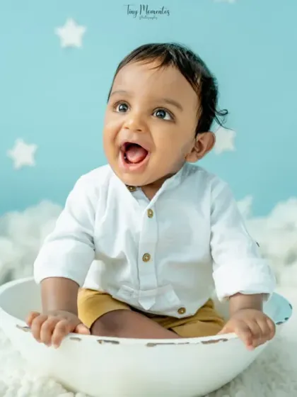 I photograph your baby’s milestones like sitter sessions, cake smashes, and playful toddler moments with a relaxed setup, personalized themes, and strict hygiene, either in my studio or at your home in Bangalore.