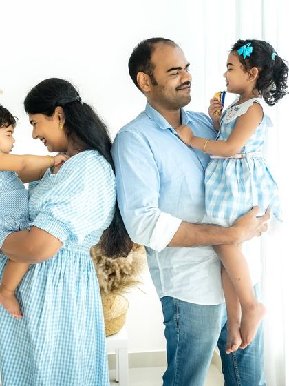 I do family photoshoots in my Bangalore studio or at your home, mixing candid and classic portraits, with options for themes, outfits, and privacy.