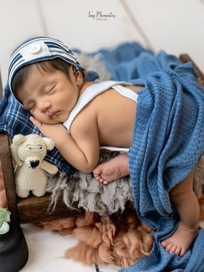 I photograph newborns aged 5 to 25 days with safe, hygienic setups, include family in every session, and offer both studio and home shoots in Bangalore.