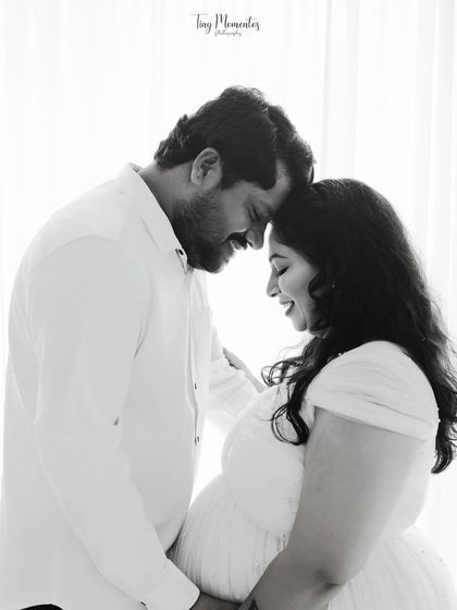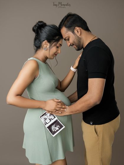 I do relaxed maternity shoots in my Bangalore studio with makeup, outfit options, and space for your partner or pet, all planned around what you want.
