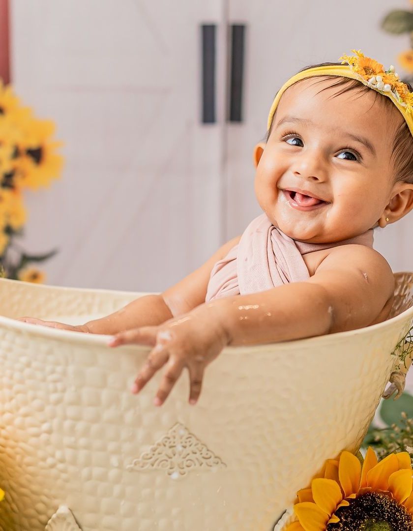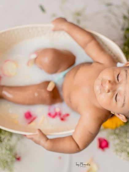 Beyond the studio, I also love capturing the candid, real-life moments of your family's celebrations, whether it's a birthday party at home or a fun splash in the pool. This collection also includes some of my other creative concepts, like serene floral milk bath sessions, showcasing the variety of ways we can document your baby's journey.