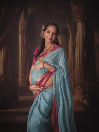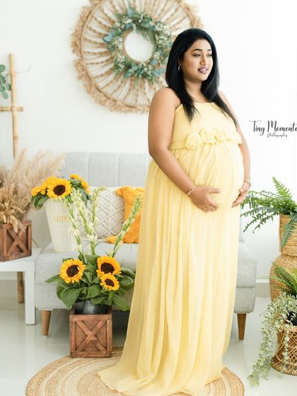 - You can pick from elegant maternity gowns (I have some you can try) or go for a simple saree for something more traditional.
