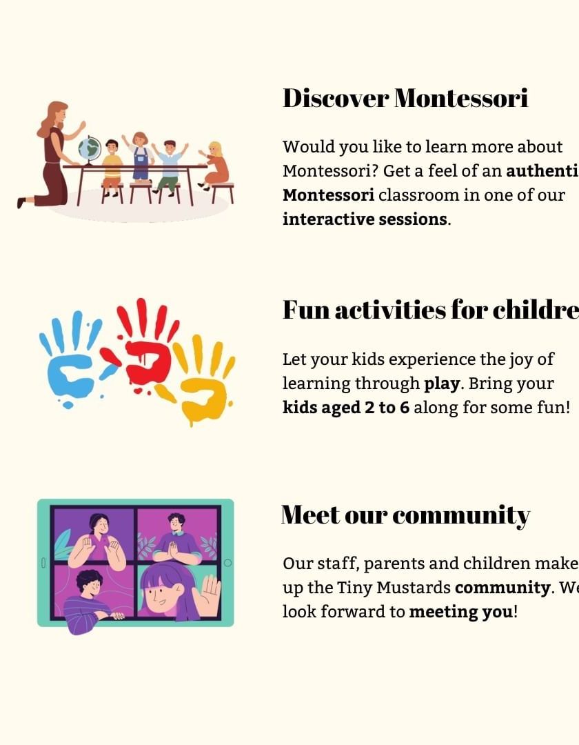 We invite you to experience our authentic Montessori classroom firsthand. Join us for an Open House to meet our teachers, see our learning materials, and discover the joy of child-led learning at Tiny Mustards.