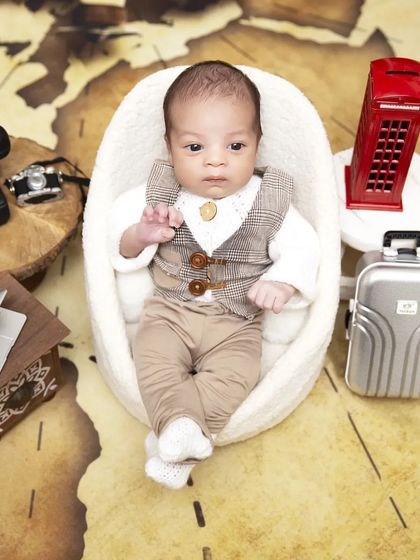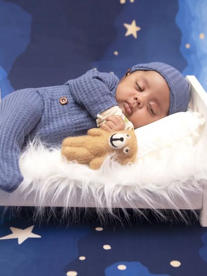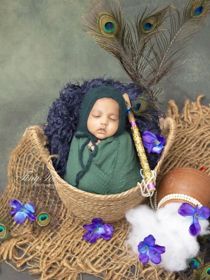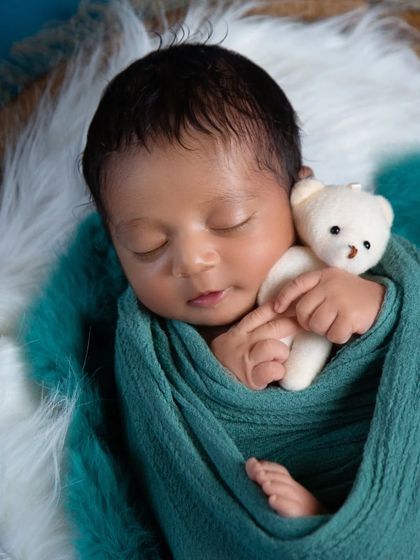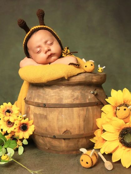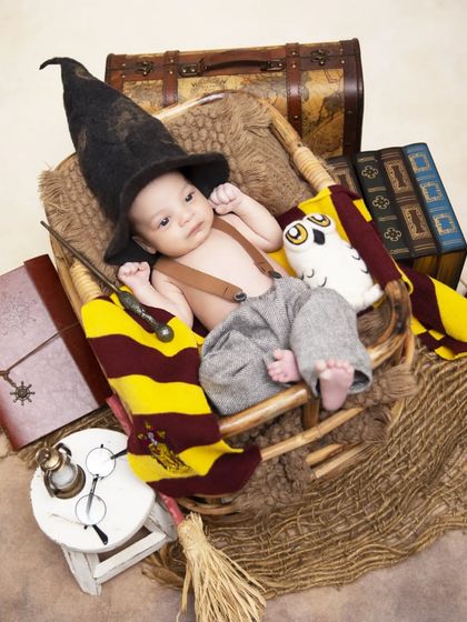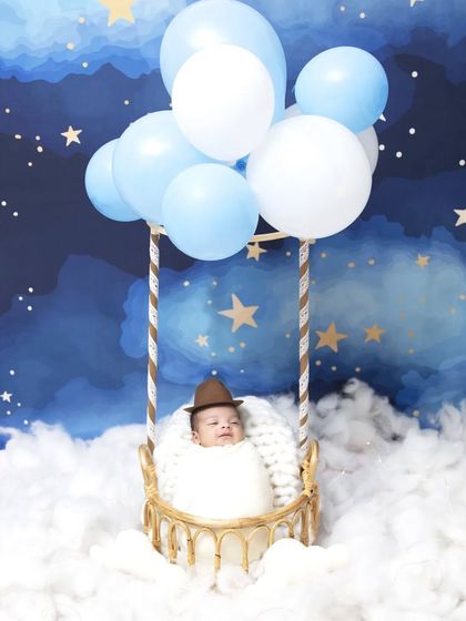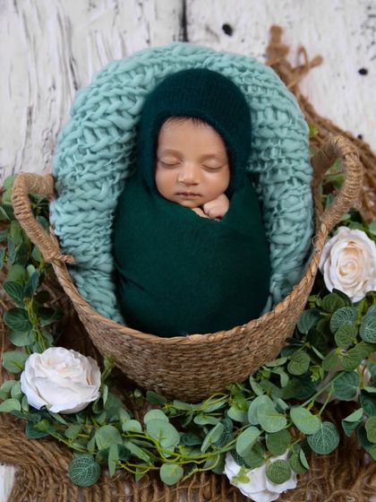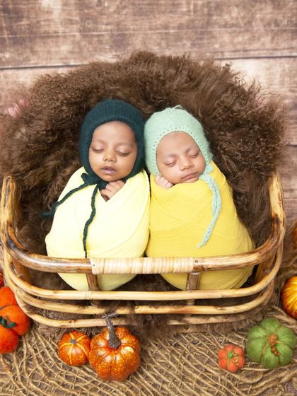 We do studio newborn photoshoots with baby-led posing, lots of themes and props, and setups for twins, so you just bring your baby and we handle the rest.