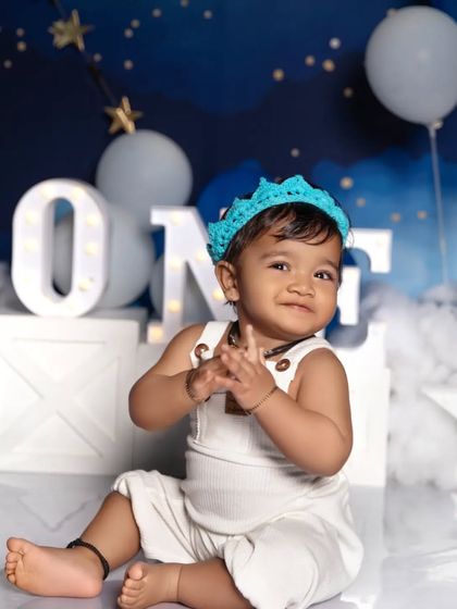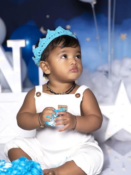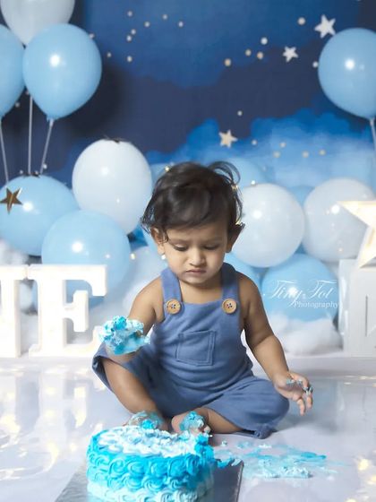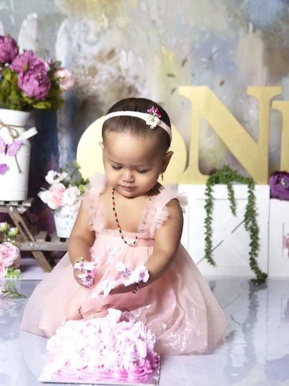 We specialize in creating fun and memorable first birthday photoshoots centered around cake smashing. Our sessions include themed setups with matching props like balloons, banners, and custom-designed cakes that complement your child's outfit.