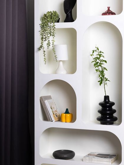 - Our signature arched shelf - looks clean, works for minimalist product shoot location.