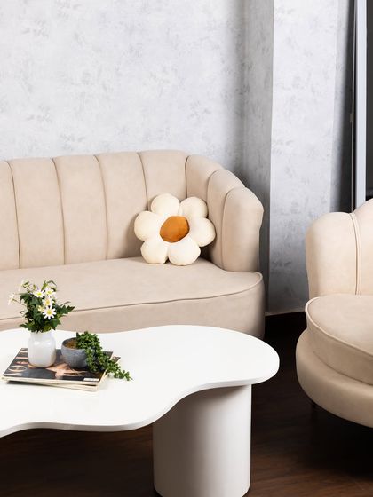 Take a closer look at the different zones within our studio. We have a variety of pre-styled corners, including a cozy lounge area, and multiple backdrop options like classic white paneling and a modern grey textured wall. All furniture and props are included and can be moved to fit your creative vision.
