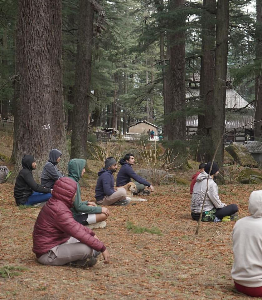 Hard work needs smart recovery. We hold yoga and meditation sessions in the peace of the forest to quiet the mind. We also use natural recovery methods like dips in the freezing river and relaxing in Vashisht's hot springs.