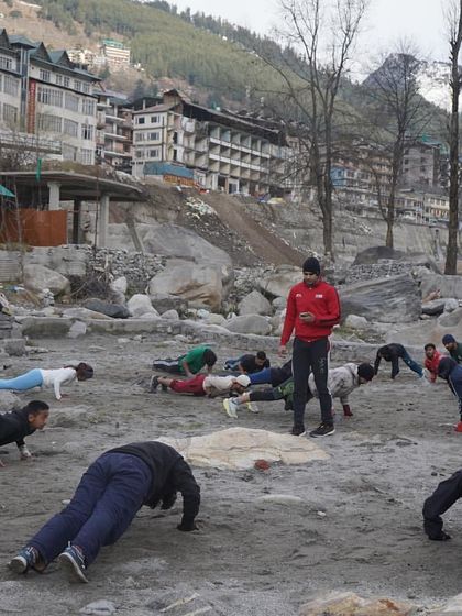 This isn't just a fitness camp, it's a Manali adventure. We organize guided group treks to places like Jogini Waterfall and Hampta Pass, plus activities like river crossing and camping under the stars.
