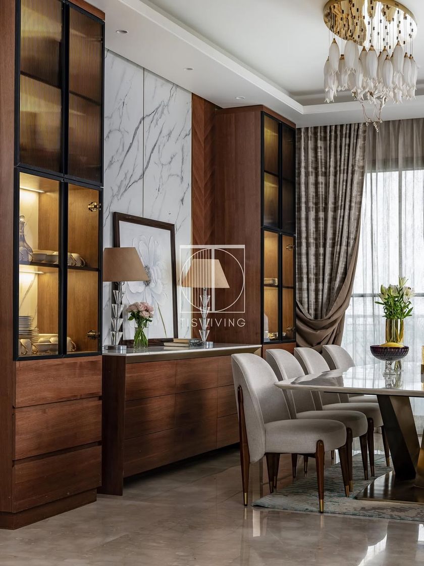 We create spaces for connection and celebration, from formal dining rooms to stylish home bars. Our work includes custom dining tables with stone or brass details, comfortable chairs, and functional yet beautiful bar units and credenzas.