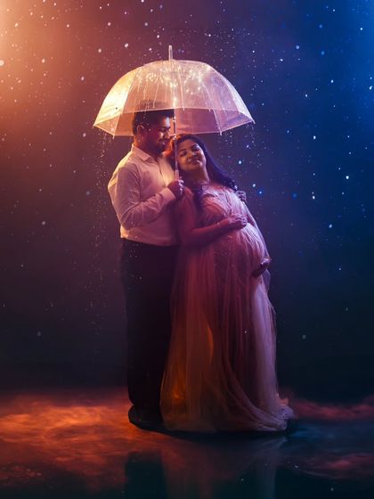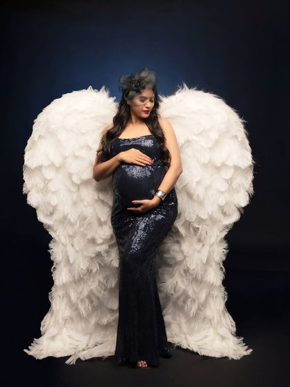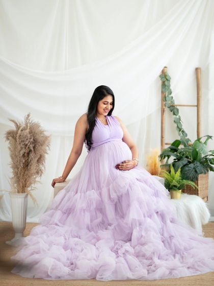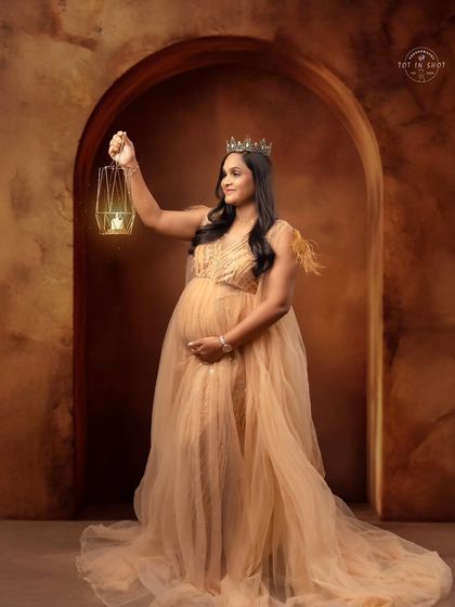 We do maternity photoshoots in our Bangalore studio or outdoors, with a big selection of gowns, props, and themes, so you can choose solo, couple, or family setups and customize your shoot.