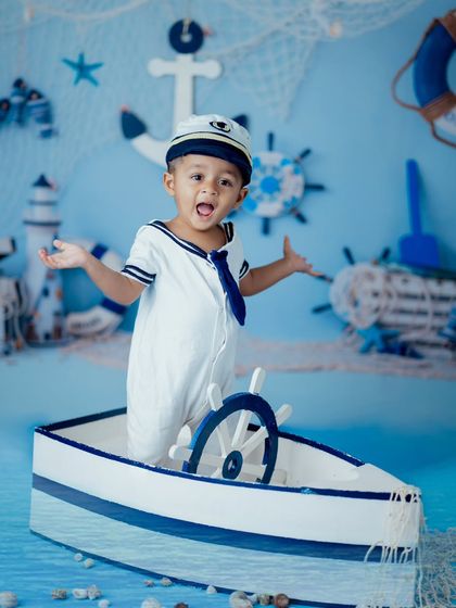 We handle everything for baby and child photoshoots in our Banaswadi studio, from newborn to toddler sessions, with props, themes, and setups so parents just need to bring their child.