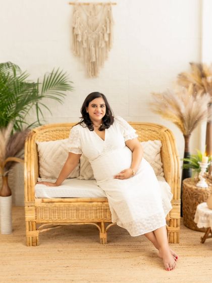 Your Style, Your Shoot - You pick: boho maternity photoshoot, elegant gown, traditional saree maternity shoot, or just casual. We’ve got props, gowns, all of it.