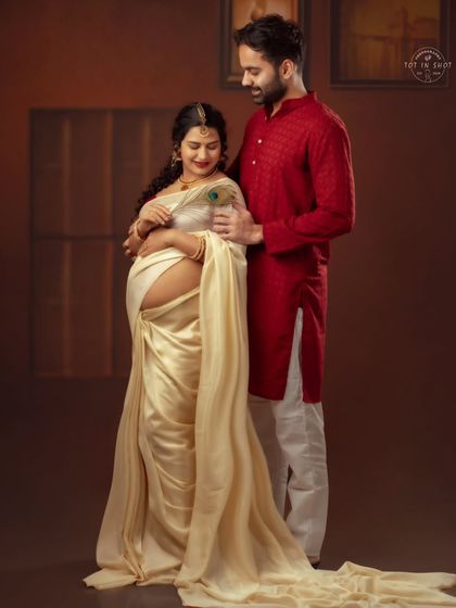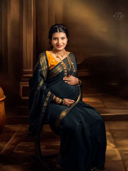 Expecting mothers who want to celebrate their pregnancy through a traditional lens, particularly those looking to incorporate cultural elements and classic Indian aesthetics in their maternity photographs.