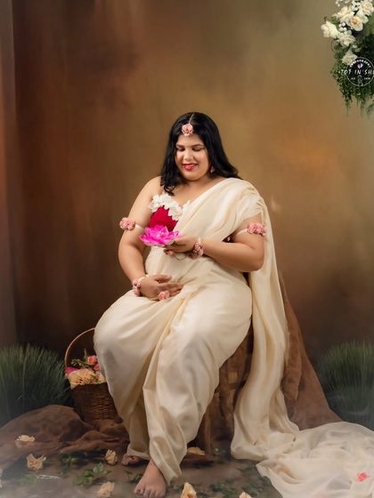 Your Style, Your Shoot - You pick: boho maternity photoshoot, elegant gown, traditional saree maternity shoot, or just casual. We’ve got props, gowns, all of it.