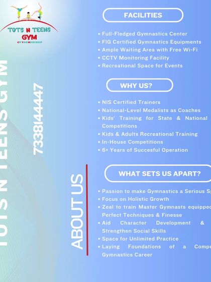 Eight years and still flipping! When we started Tots N Teens Gym, we just wanted everyone to try gymnastics - not just the pros. Some days, we love conditioning, some days, not so much (uff, legs hurt!). We’re ex-national gymnasts who turned coaches, and for us, it’s about more than cartwheels - it’s about confidence, character, and finding your groove. Our place? Feels like home, whether you’re a tiny tot, a grown-up, or just a parent chilling with chai.